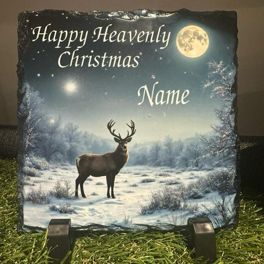 Personalised Christmas Stag memorial slate with glitter indoor and outdoor