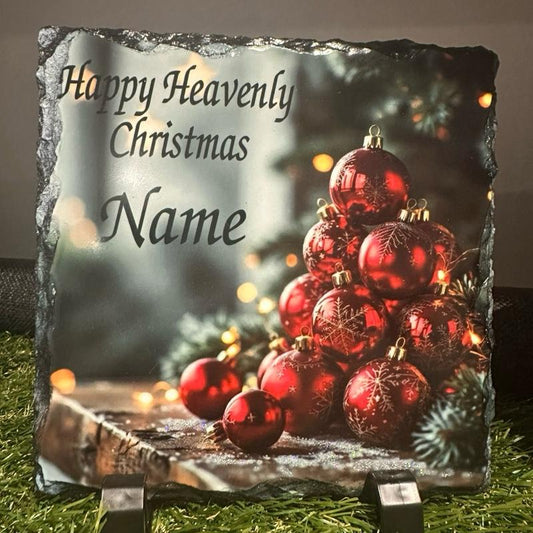 Personalised Christmas bauble memorial slate with glitter detail indoor and outdoor