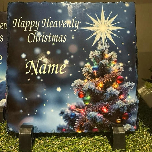 Personalised Christmas tree memorial slate with glitter indoor and outdoor