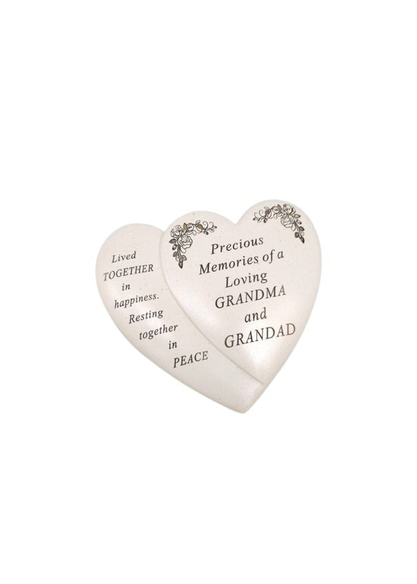 As a memorial, this double heart with flower detail is a beautiful way to honor a loved one. Measuring 18x15cm, it is a perfect size to fit in any space. Simply choose from the options