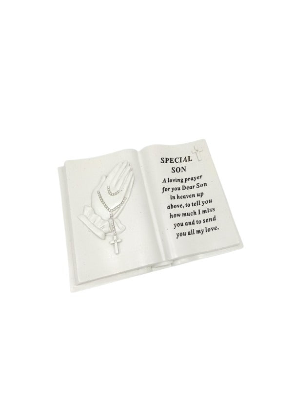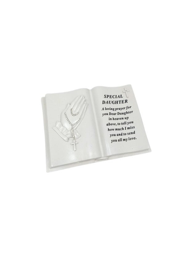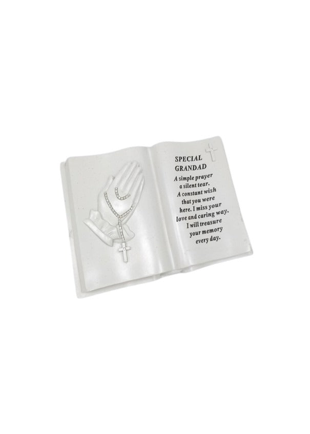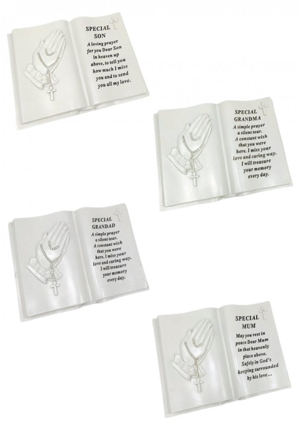 The Options Hands Memorial Book with Rosary Bead Diamante Decoration is a beautiful addition to any memorial garden or graveside. Measuring 24x17cm, this praying hands memorial book is adorned with a stunning rosary bead diamante decoration.