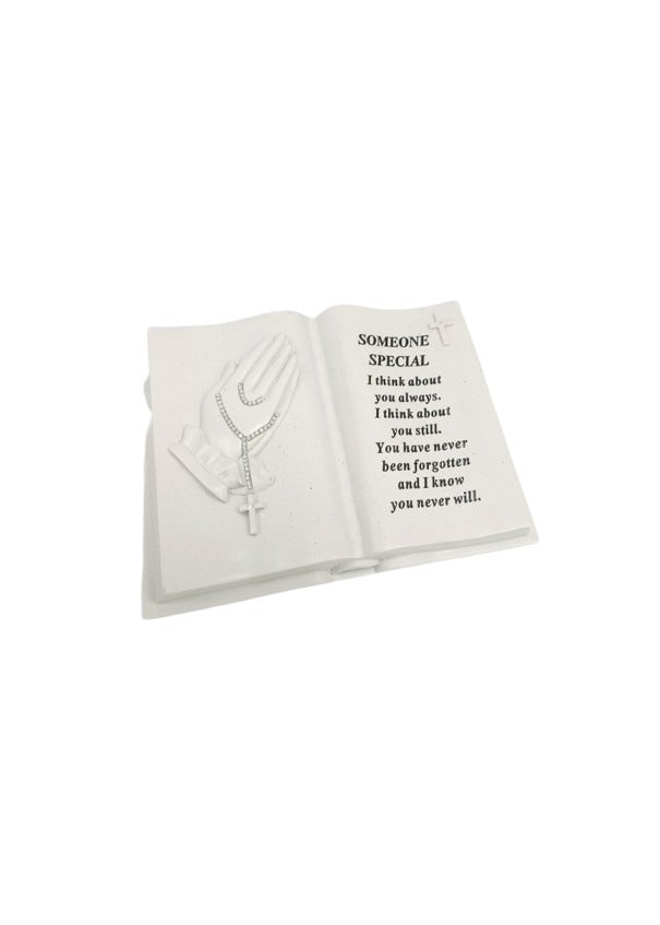 Options - Hands memorial book with rosary bead diamante decoration stone.