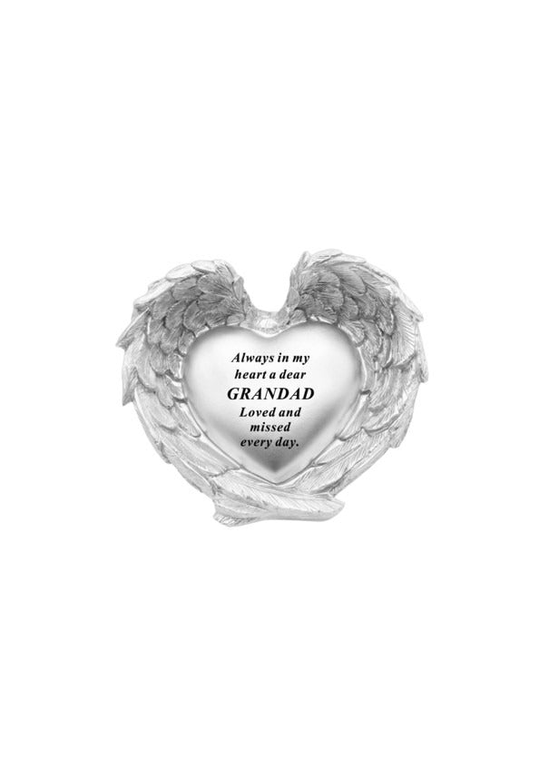 Silver heart in wings.Enhance your outdoor space with our beautiful Options - silver heart in wings outdoor plaque. Crafted with intricate details and a silver finish, this plaque adds a touch of elegance to any garden or patio. Made to withstand outdoor conditions, it is a perfect addition to your garden decor.