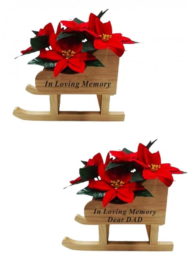 Options - Wooden Sleigh With Poinsttia Flower Pot